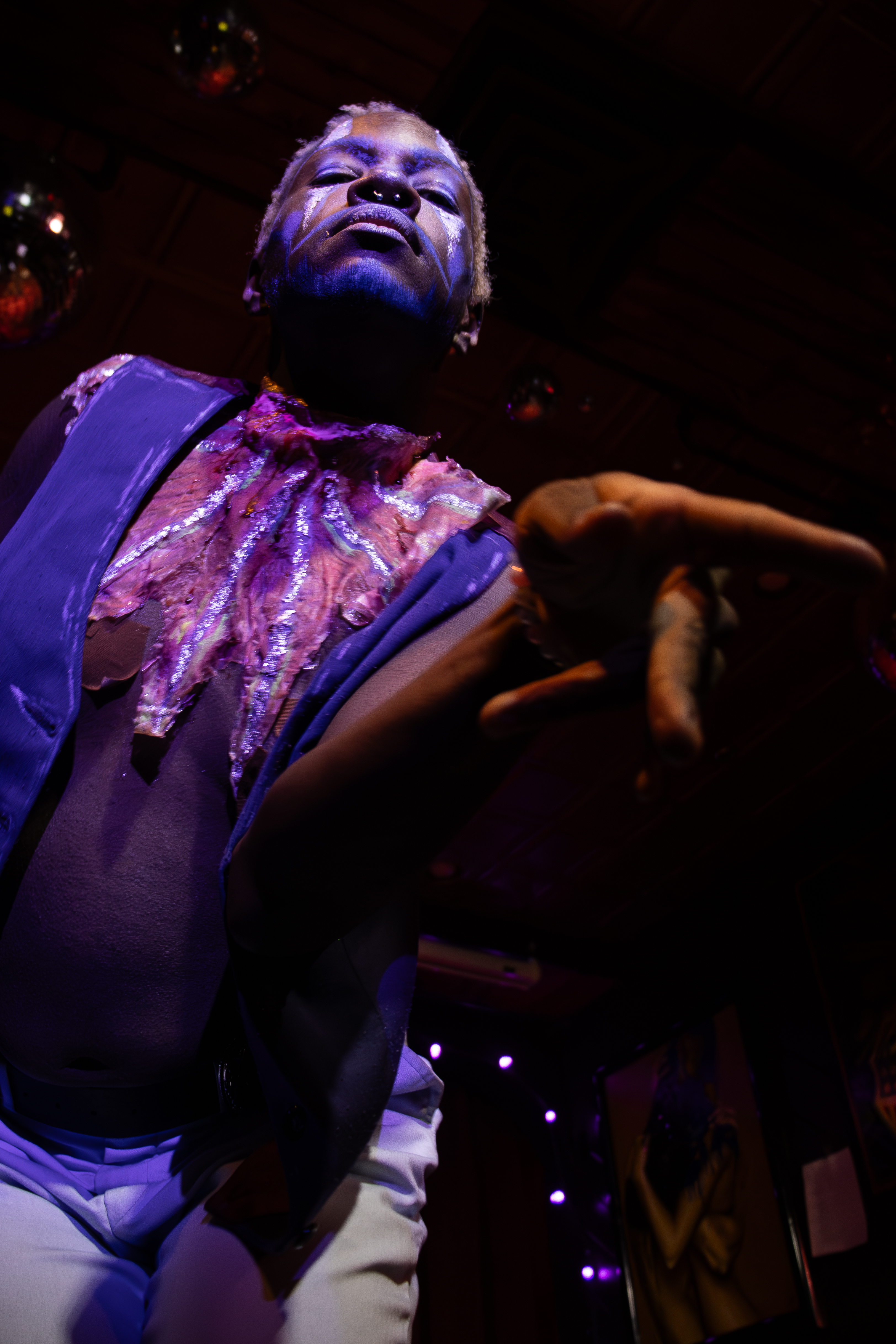 Because I’m Black and obviously queer and I have a bigger body, it’s been really hard for people to look past that and book me for things. But when I did get booked—which I didn’t mind, I love looking like a little hoe and performing and stuff — but it wasn’t about the talent or anything like that any more. It was about looking hot and having to be eye candy for these people. And sometimes that’s not always fun. I make good money, but I don’t get to express myself on stage in a way that I do as Kiss the Clown. In queer spaces, I get to be silly1.