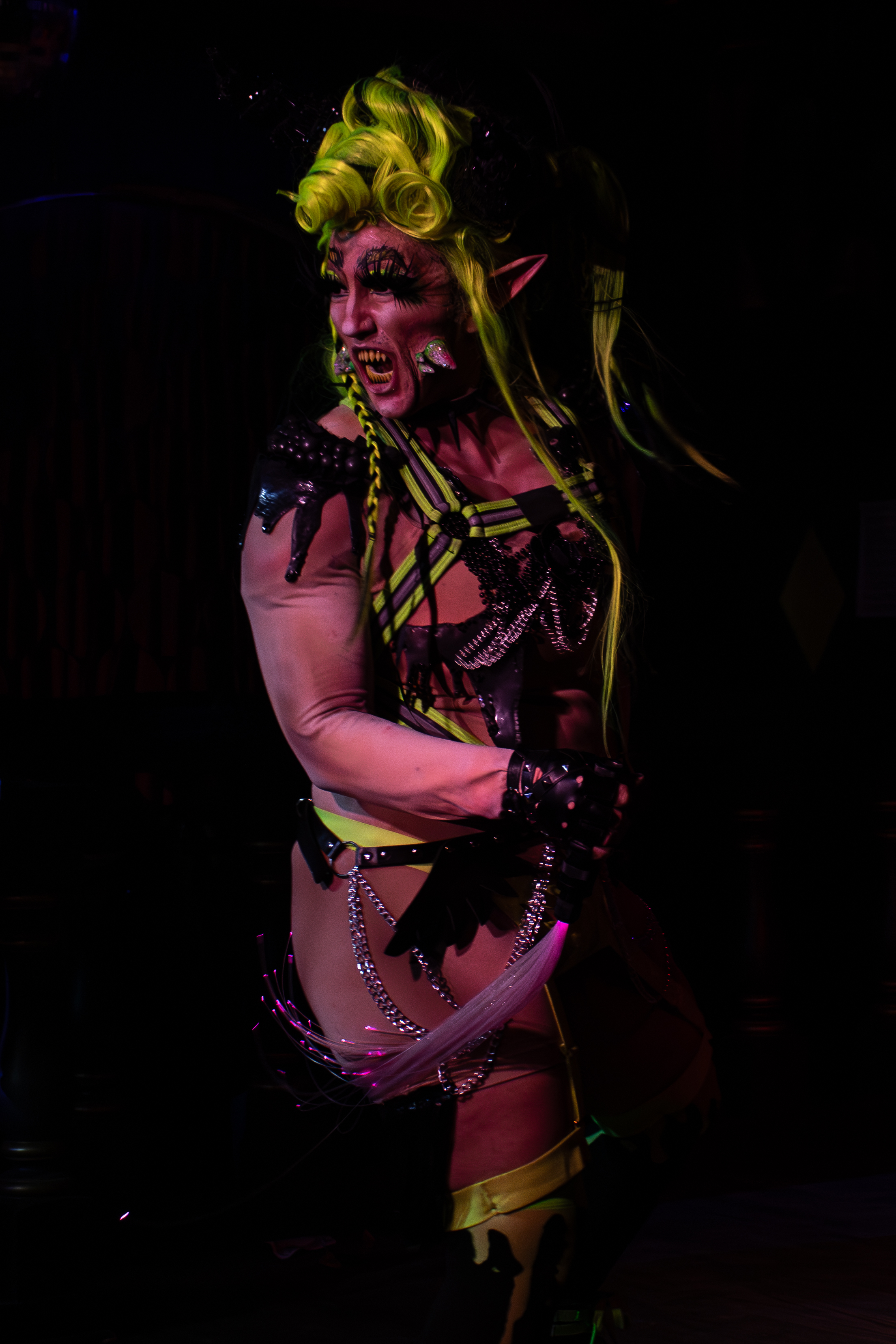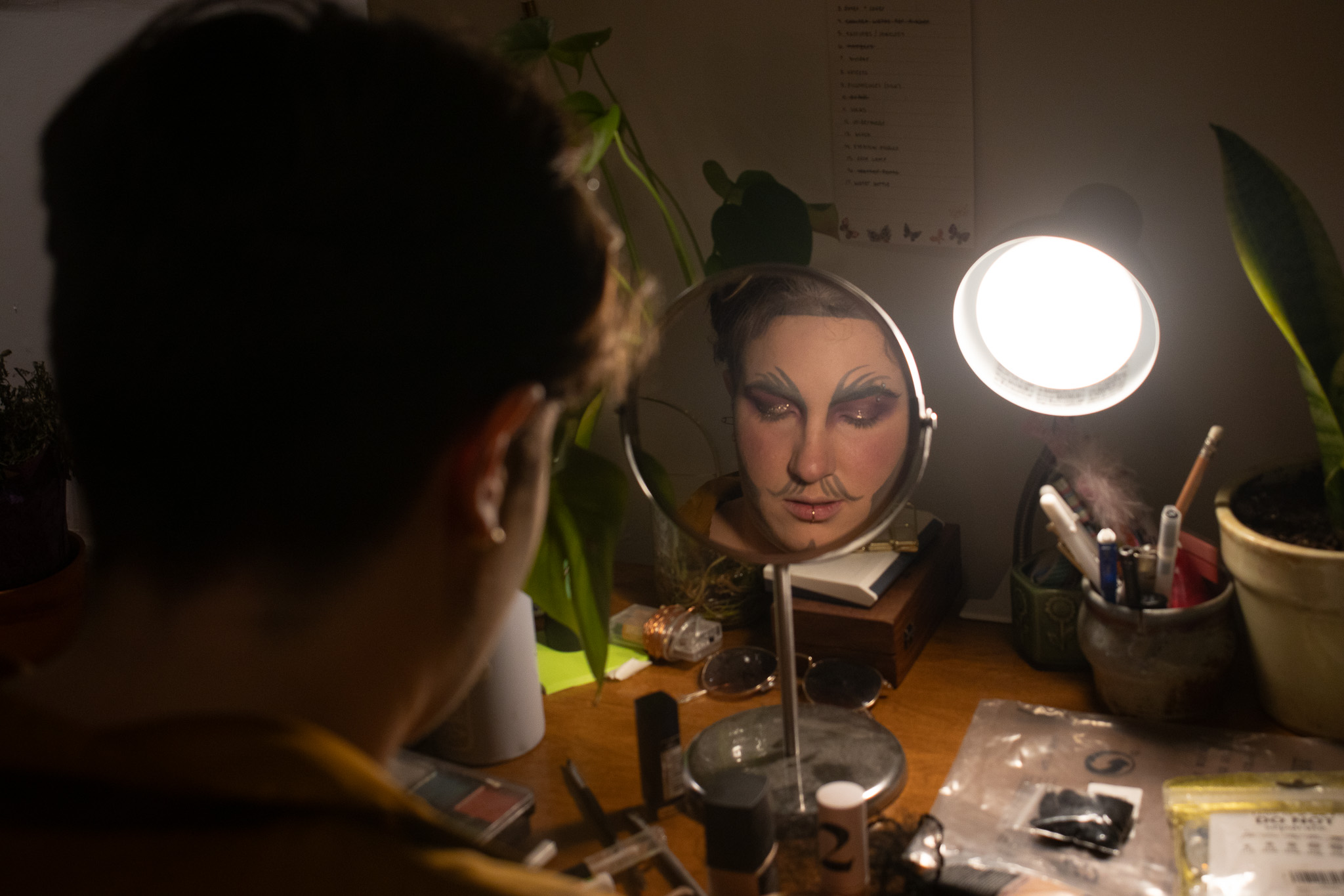 I ended up starting doing drag before getting better at makeup because my friend just pushed me to do it. I was like, “I really want to do it, but I don’t want to be ugly,” and they were like, “You honestly, just have to be ugly. It’s okay. Like, go do your performance, sign up for the open stage. You’re gonna be bad for the first time. You’re a fantastic performer so it won’t be gut-wrenchingly awful.” And that’s what happened. I just did it and then there were people in the community that gave me feedback and I took it all and I ran with it.