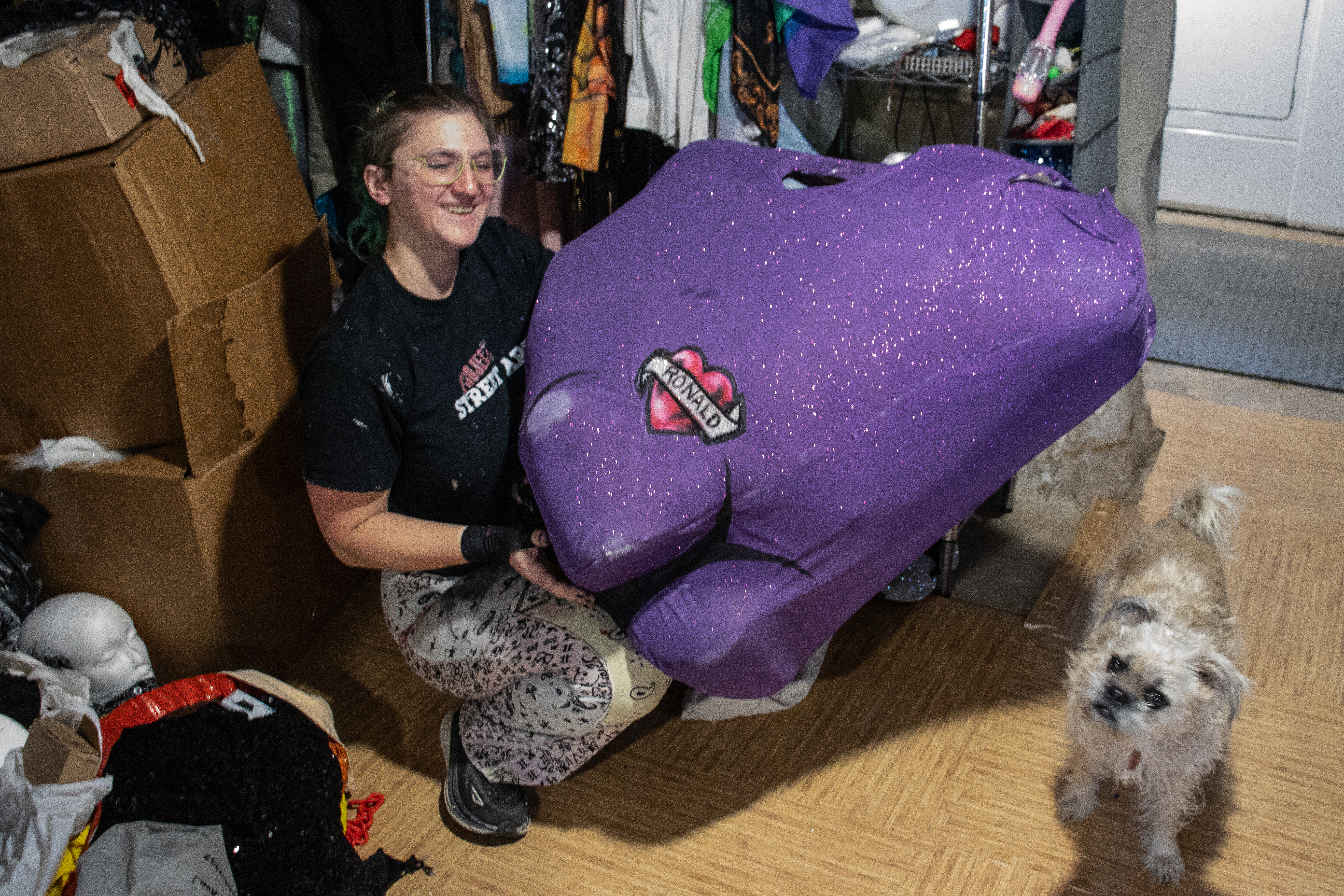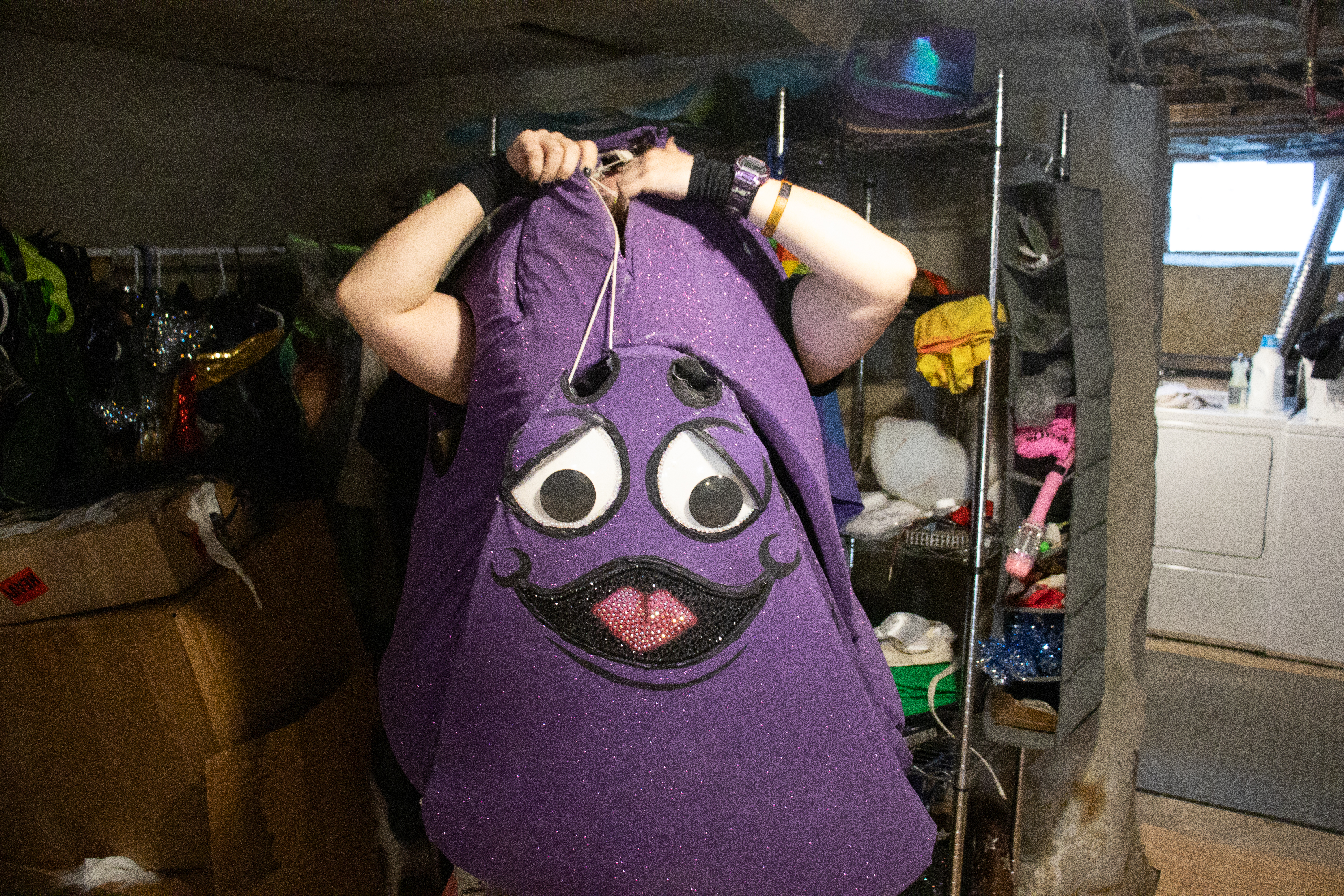 Taney also creates costumes as part of their job—including work for RuPaul’s Drag Race, Dragula, and an upcoming Netflix TV show—and for entertainment, including the Grimace costume pictured above.