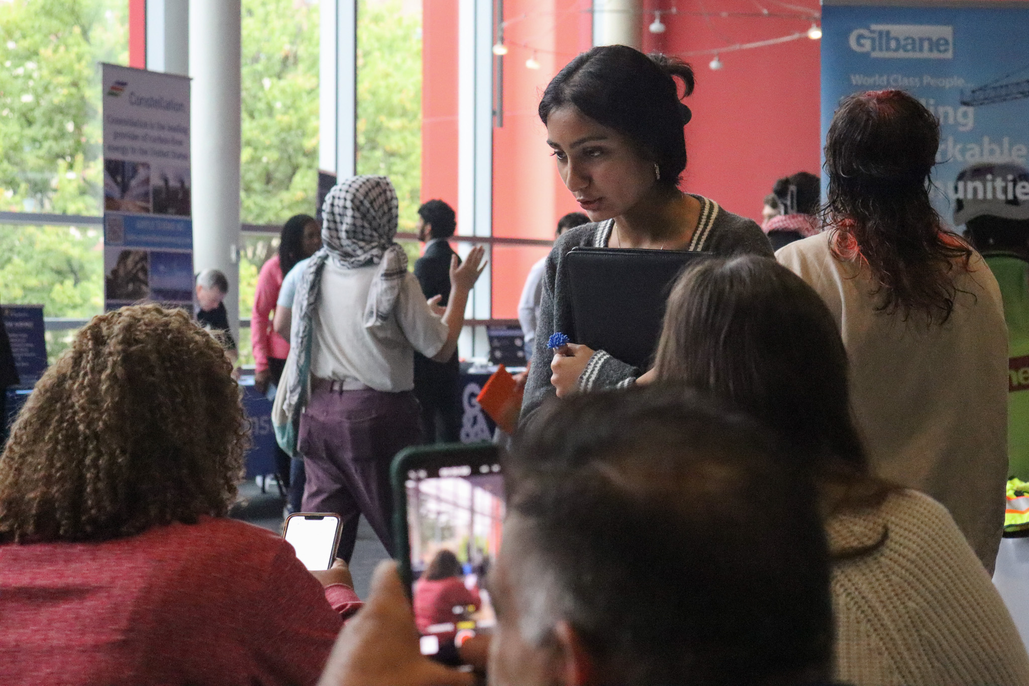 During the 30 minutes that the group was present, many students tried to continue the fair as usual, speaking with employers in other sectors, including civil and biomedical engineering.